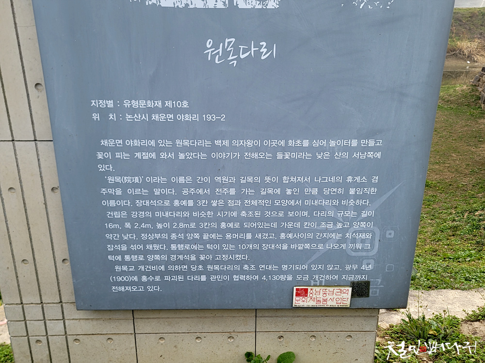 원목다리는 논산 채운면 야화리에 있습니다.