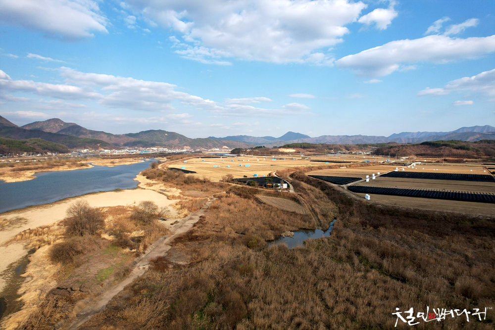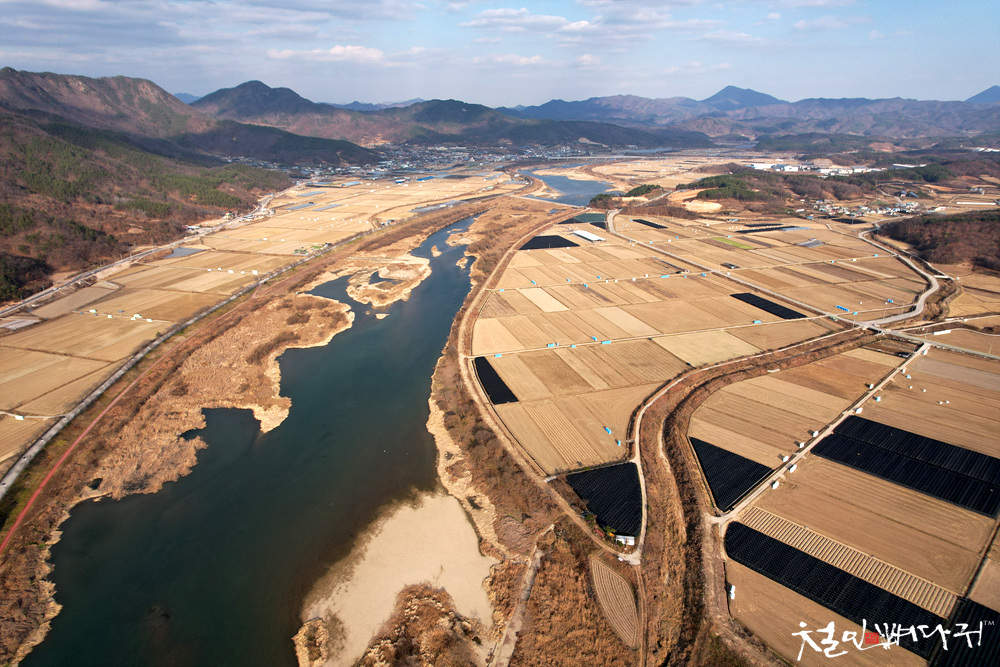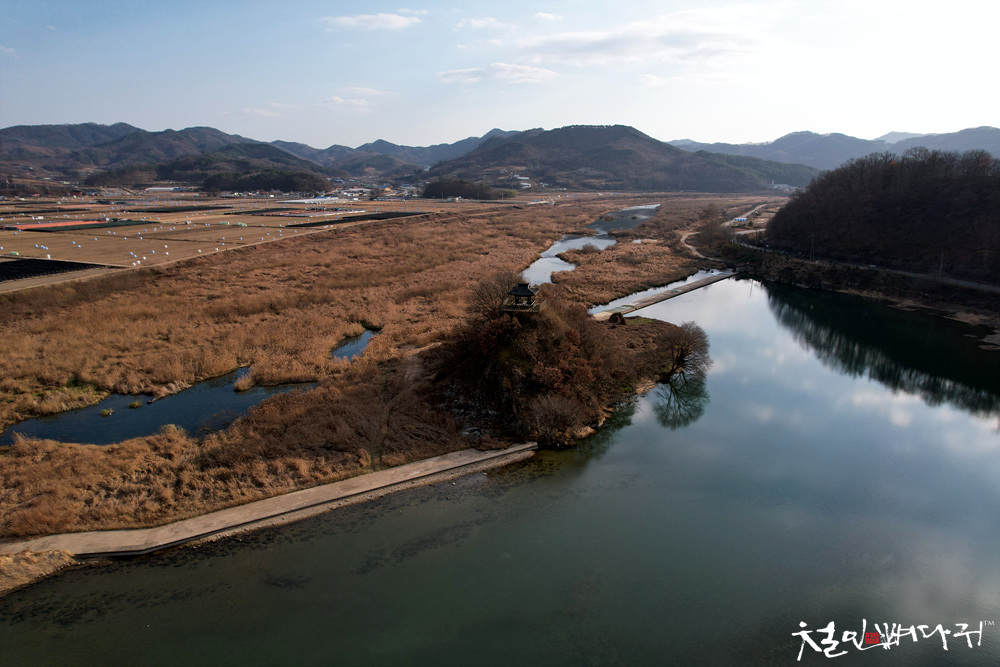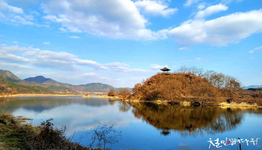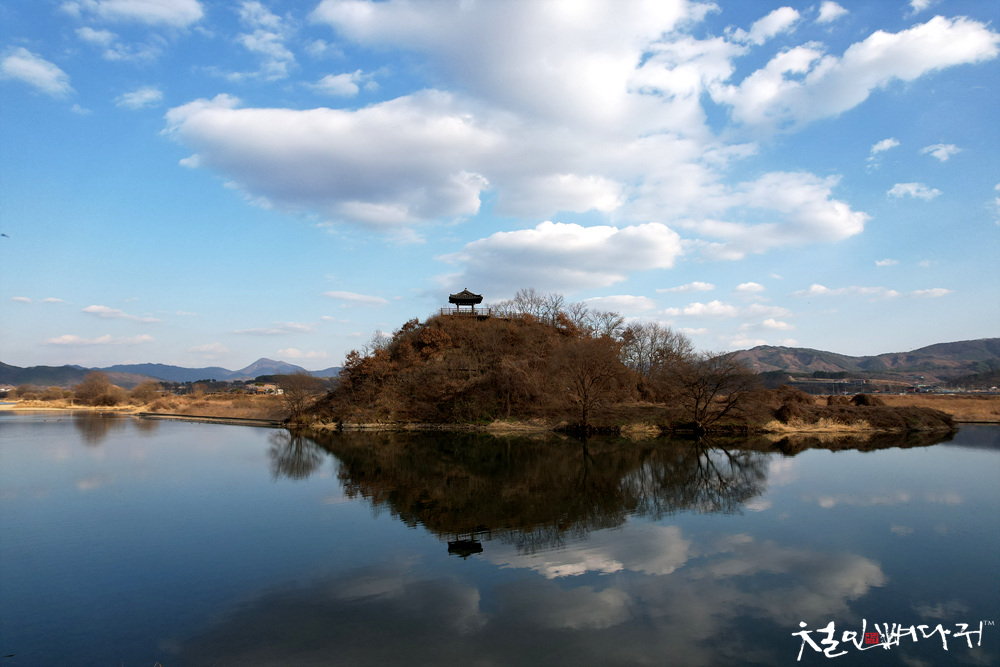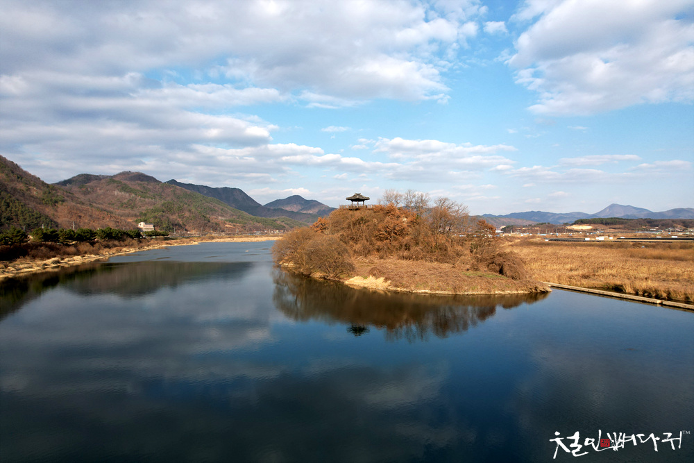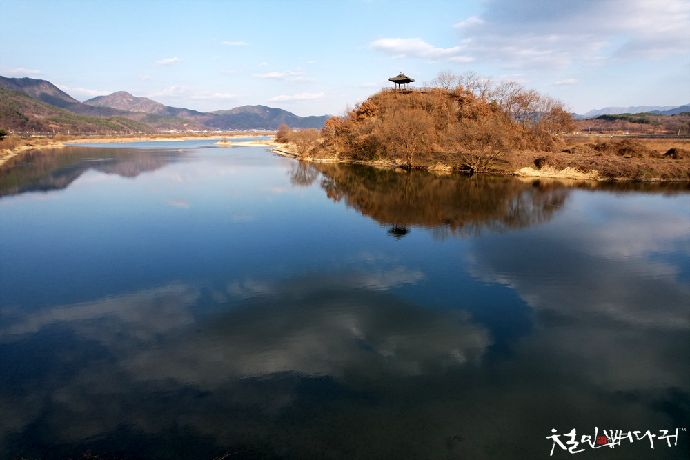 잔잔한 보청천에 구름이 하늘과 똑같이