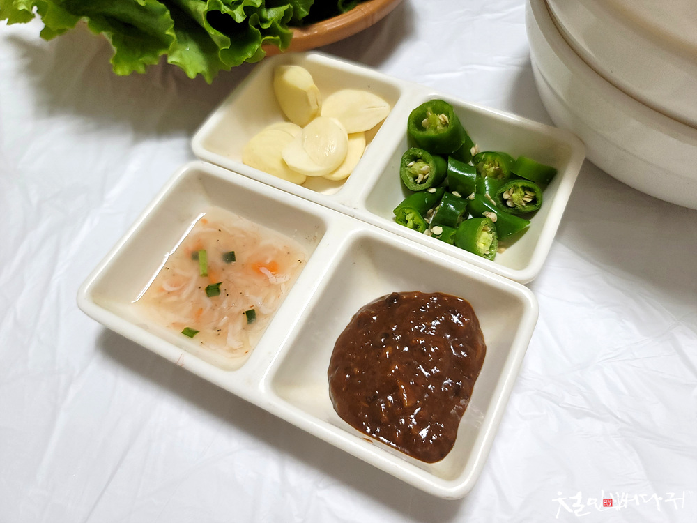 지짐이 정식에 양념게장, 조개탕이 포함되는