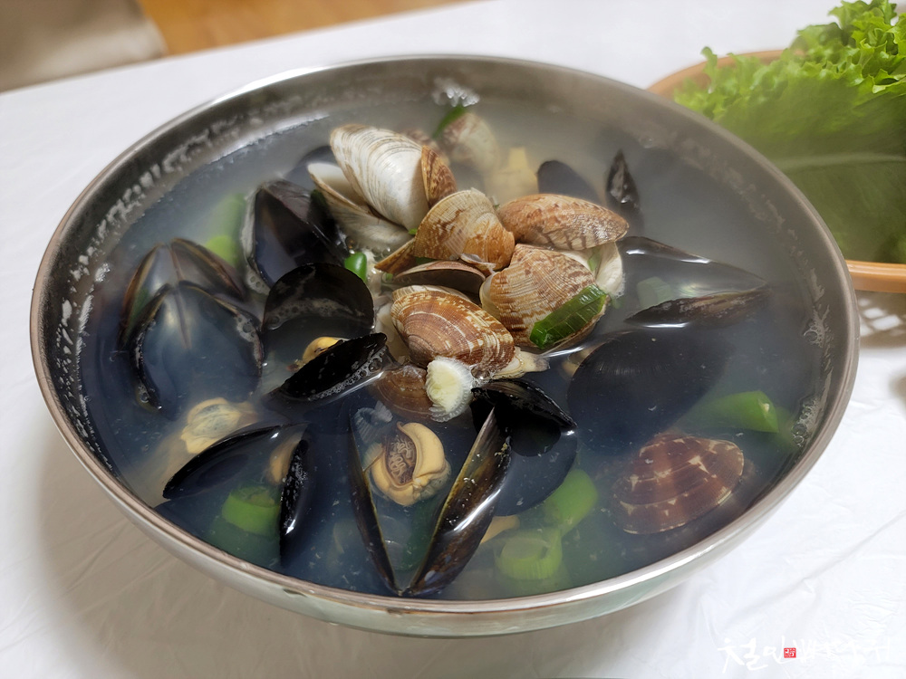 조개탕은 홍합도 들어있습니다.