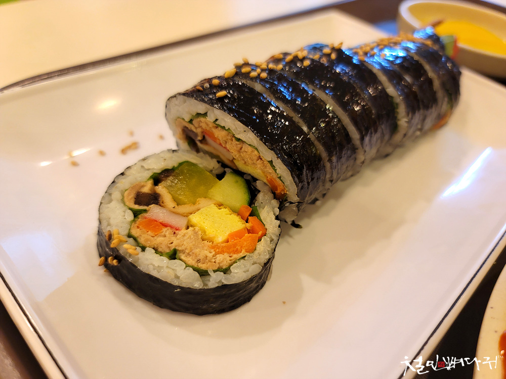 큼직한 김밥에 밥보다 알맹이가 많은