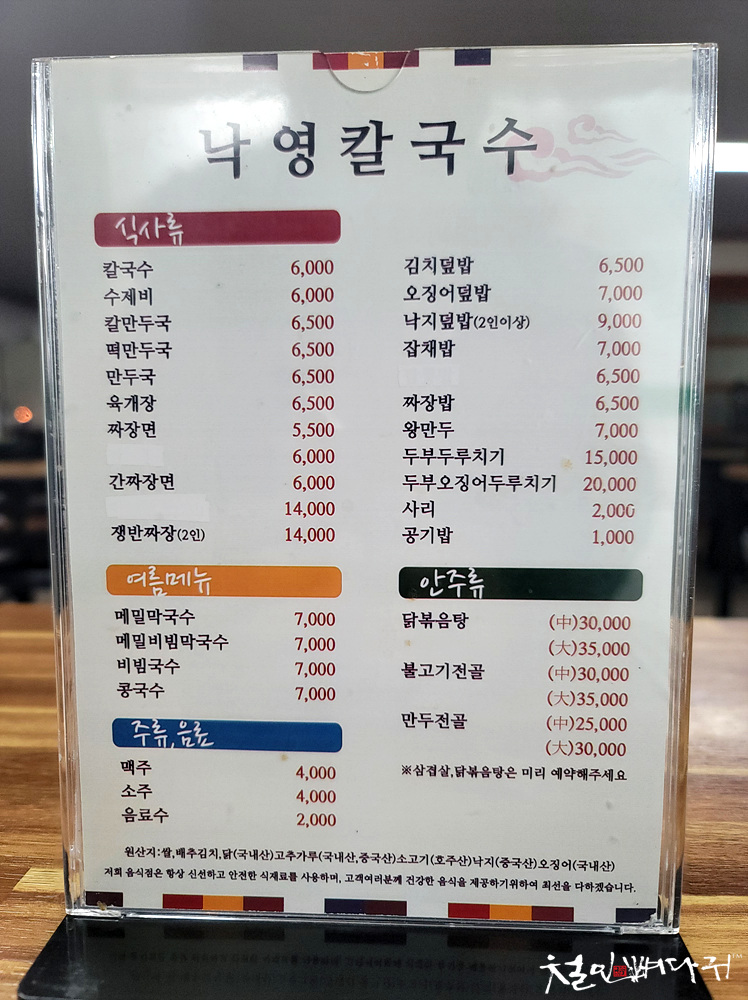 그 외 전골 같은 것도 있어서 낙영칼국수라는 상호가