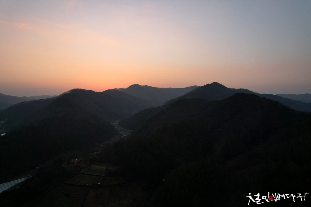 서쪽으로 노을이 지고 있습니다.