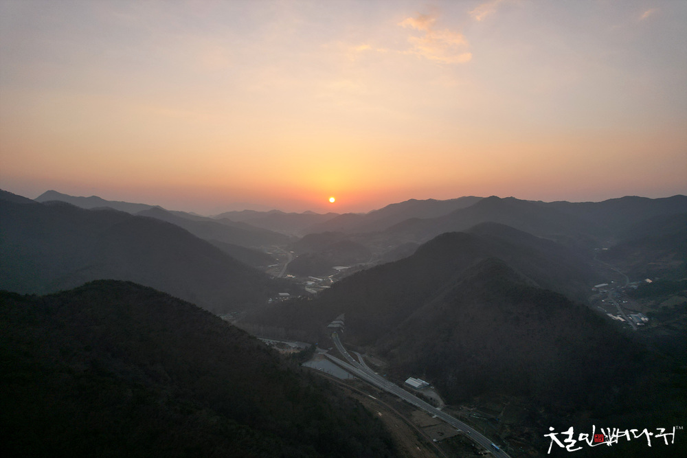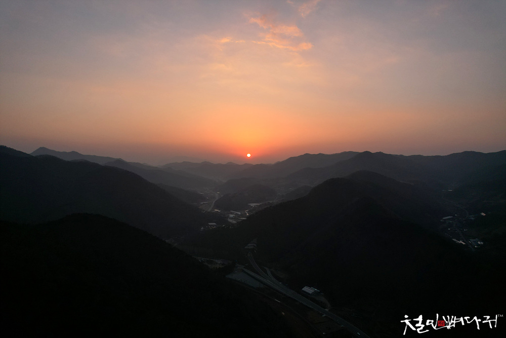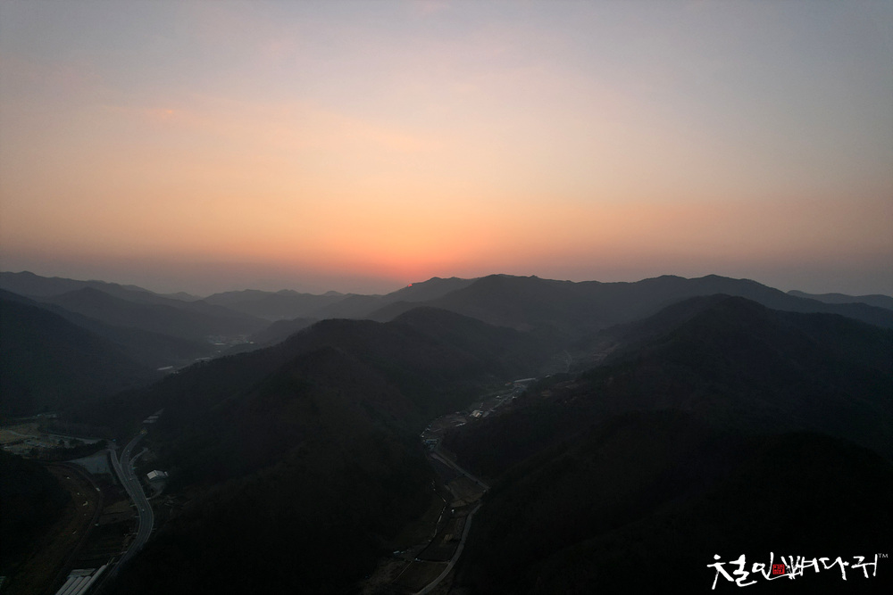 드론비행을 했는데, 곧 서쪽으로 지는 노을을
