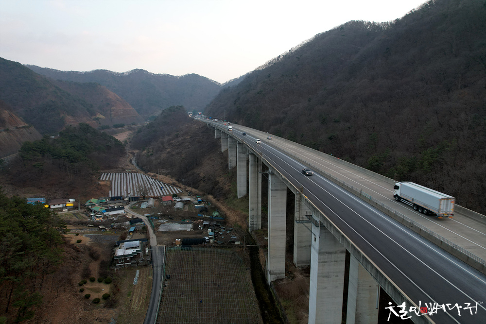 대전-통영고속도로의 높은 교각이 있는 곳