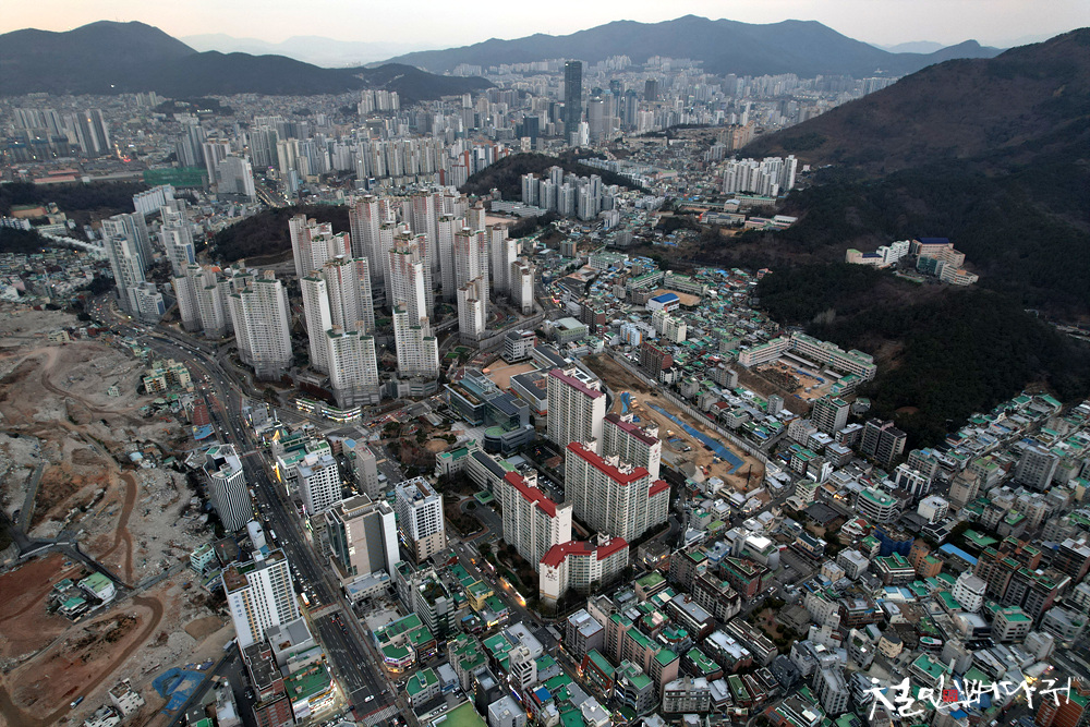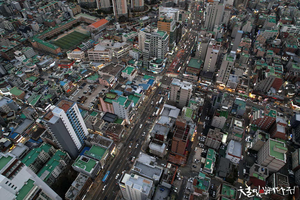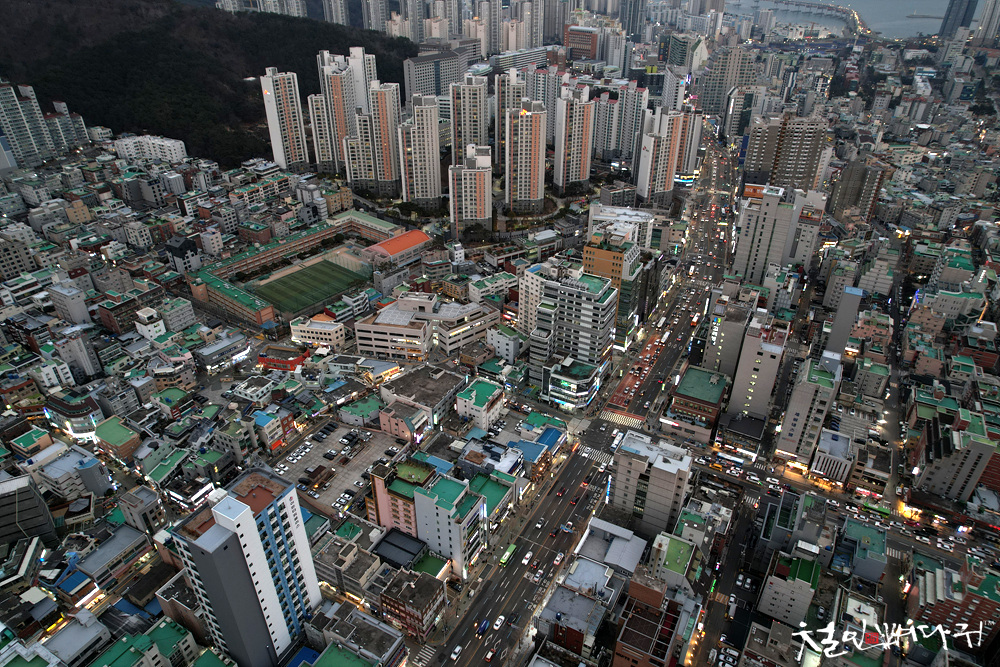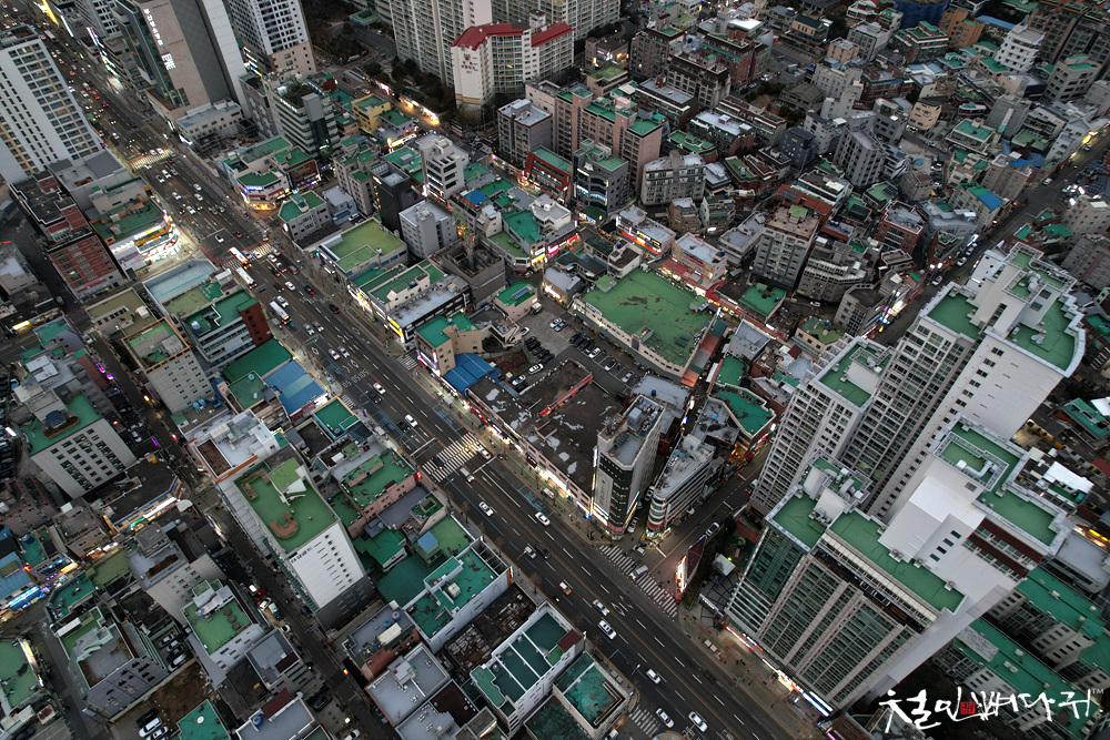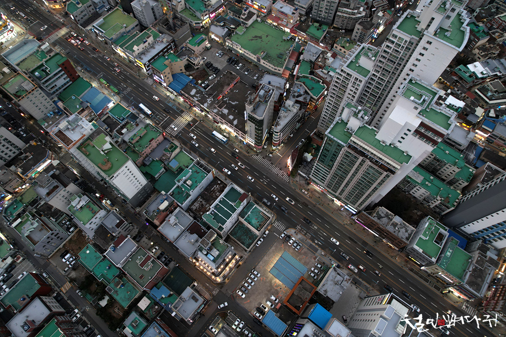 부산 남구 대연동의 도시에서의 드론 촬영입니다.