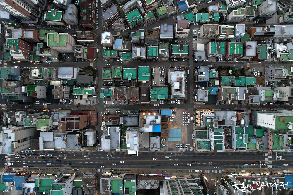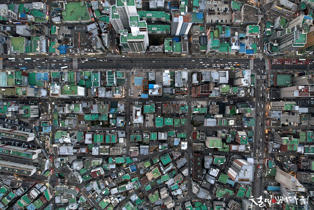 온전히 도시의 모습을 드론으로 항공촬영을 해서