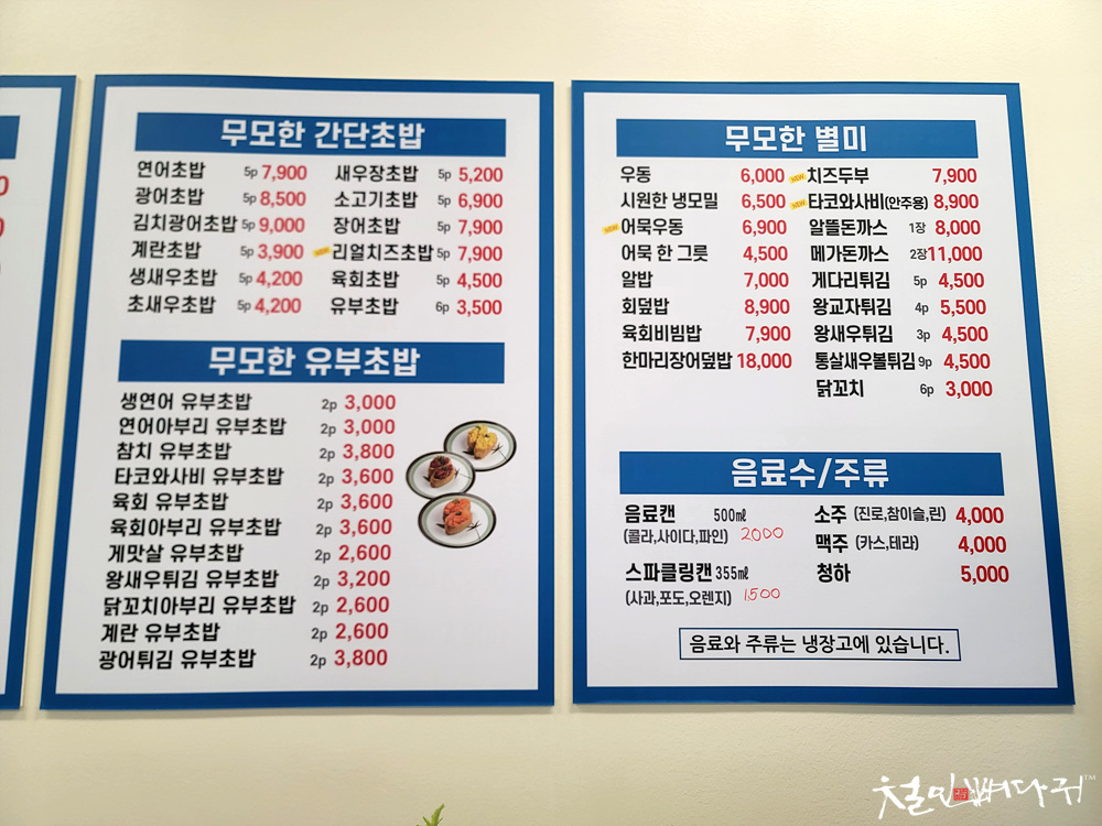 초밥에 와사비가 없는 것이 무모한초밥의 특징으로