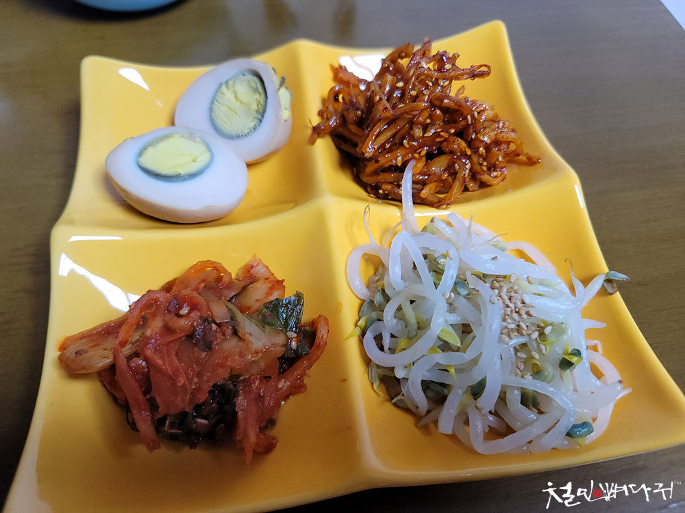반찬들은 4 분할 접시에 담아줬는데,