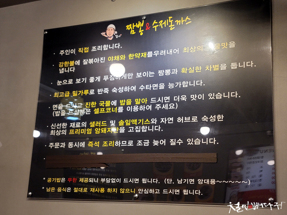 여기는 짬뽕 먹을 때, 밥은 공짜로 먹을 수 있는데,
