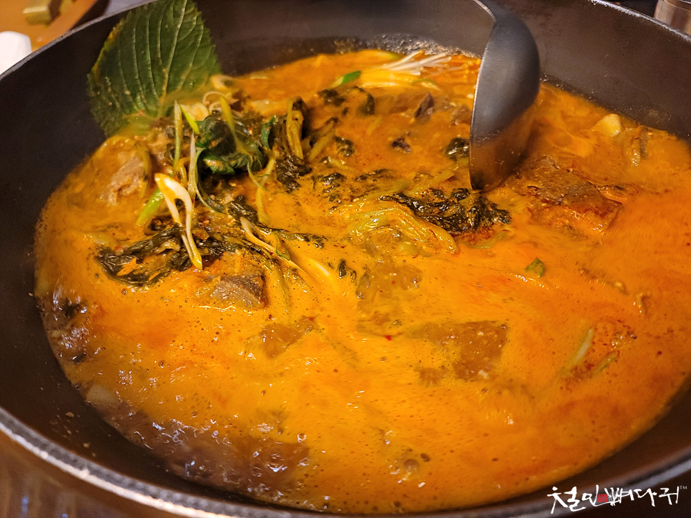 커다란 뼈들과 시래기들이 들어 있어서 잘 익혀줍니다.