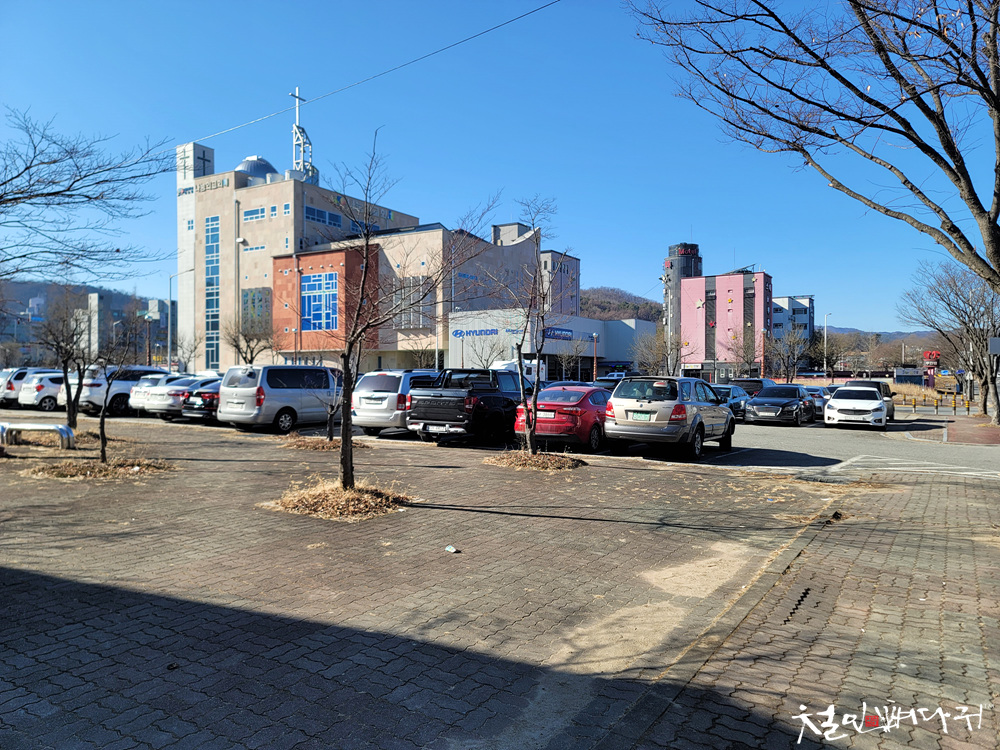 식당 오른쪽으로 100M쯤에는 넓은 주차장이