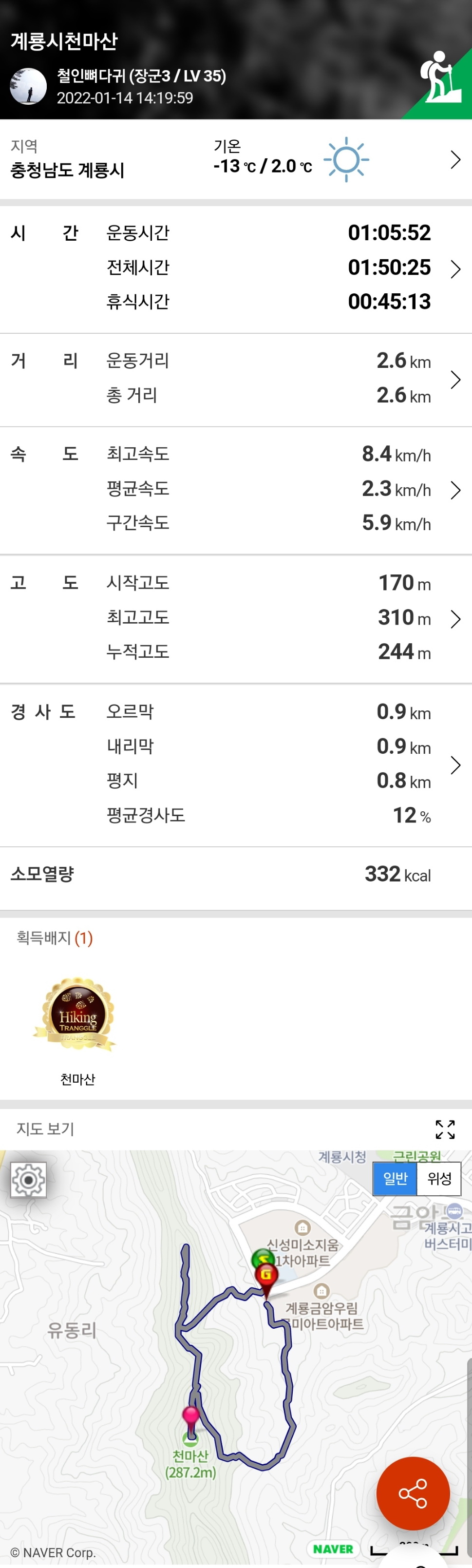 금암초등학교 있는 곳은 천마산 정상과 팔각정 중간쯤 되는