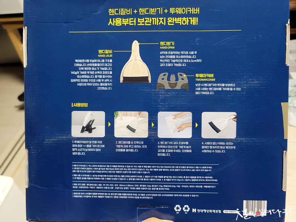 쓰레받기를 사용해서 담아 버리는 용도로 사용합니다.