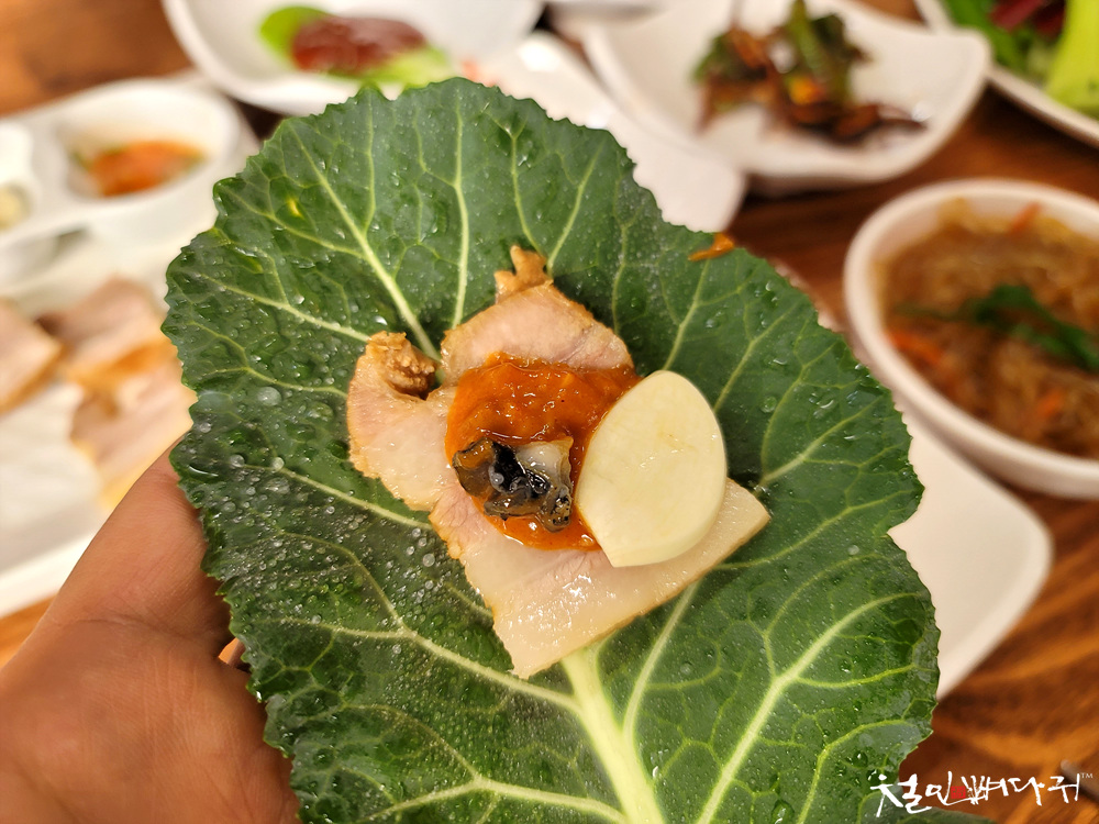 밥 나오기 전, 수육 쌈을 먼저 먹었습니다.