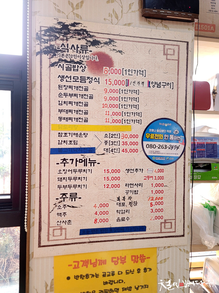 벽면에 붙어있는 일반 메뉴에는 시골밥상 외에