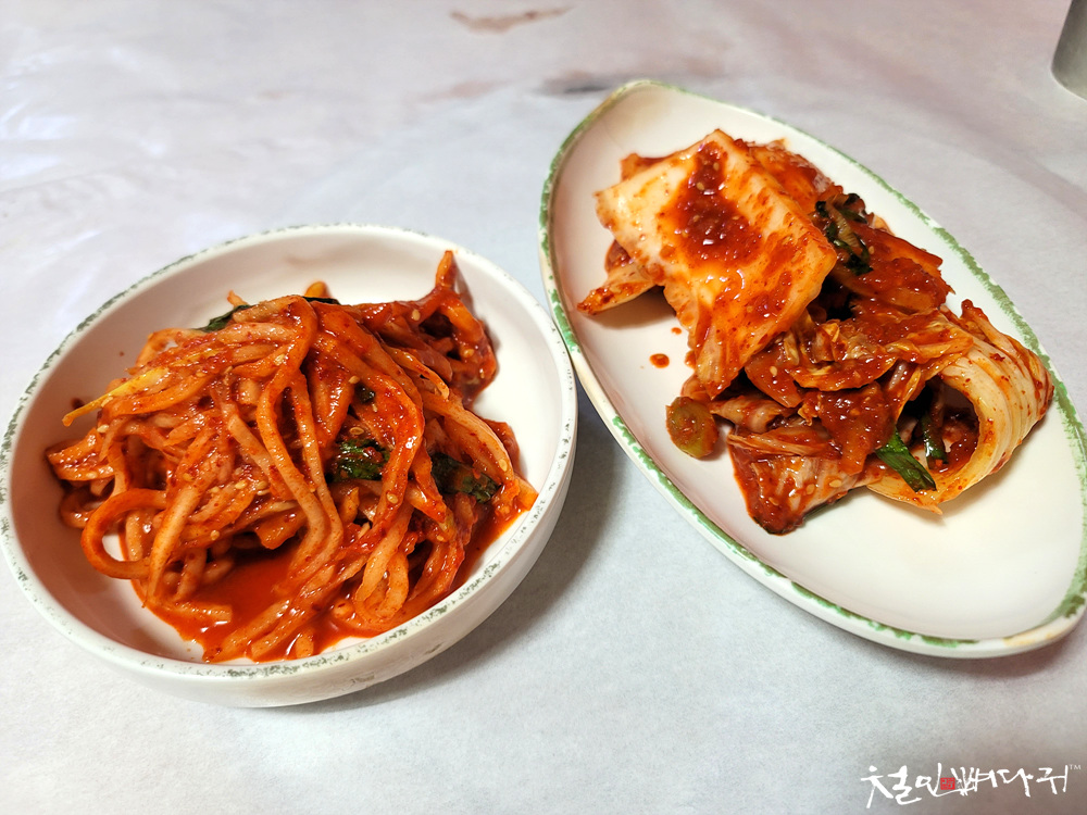 얼큰이칼국수에는 반찬이 2가지 나옵니다.