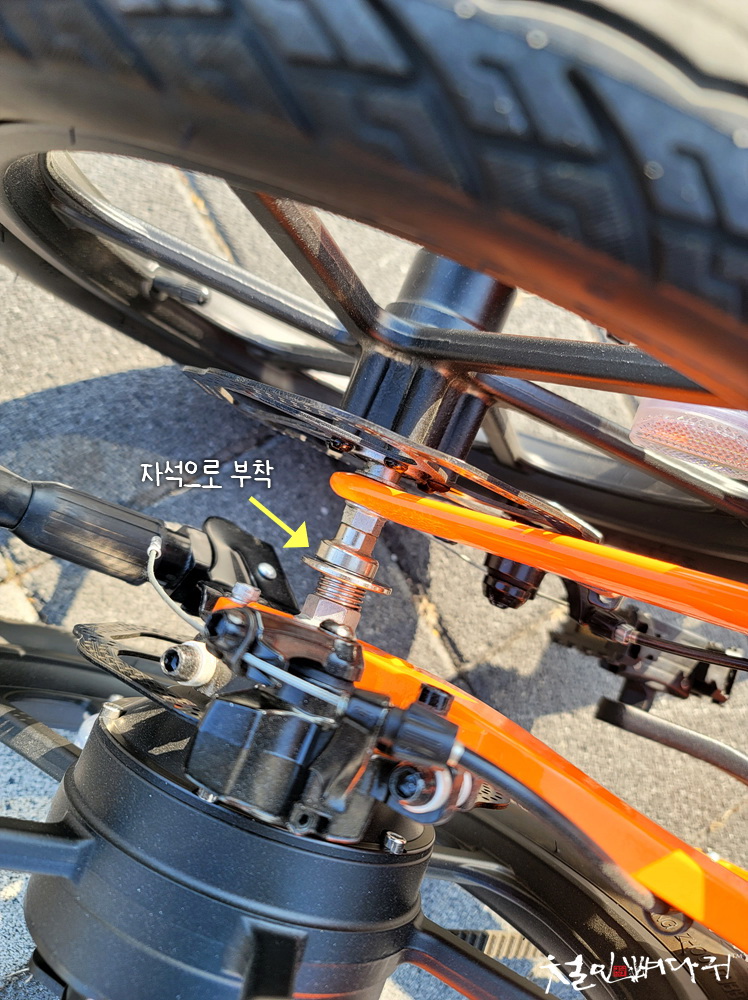배터리가 내장된 곳이 자전거를 접었을때