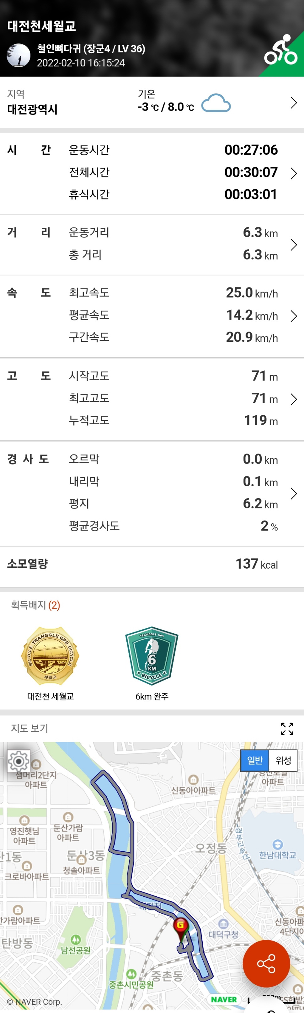 | 대전시내 자전거라이딩 23.67km(중촌동-시내-옥계동.대전천변자전거도로)(Relive) (0) | 2021.05.11 |