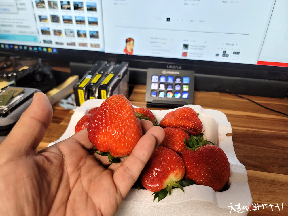 큰 딸기가 달고 맛있다고 하더니, 사실입니다.