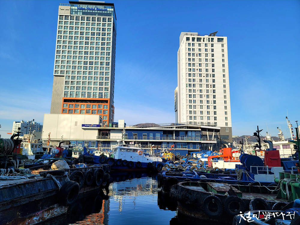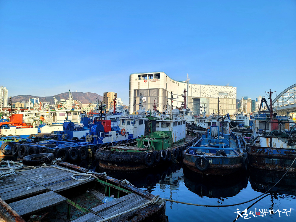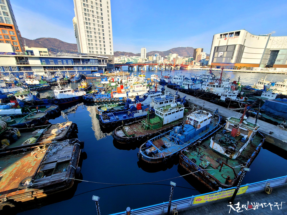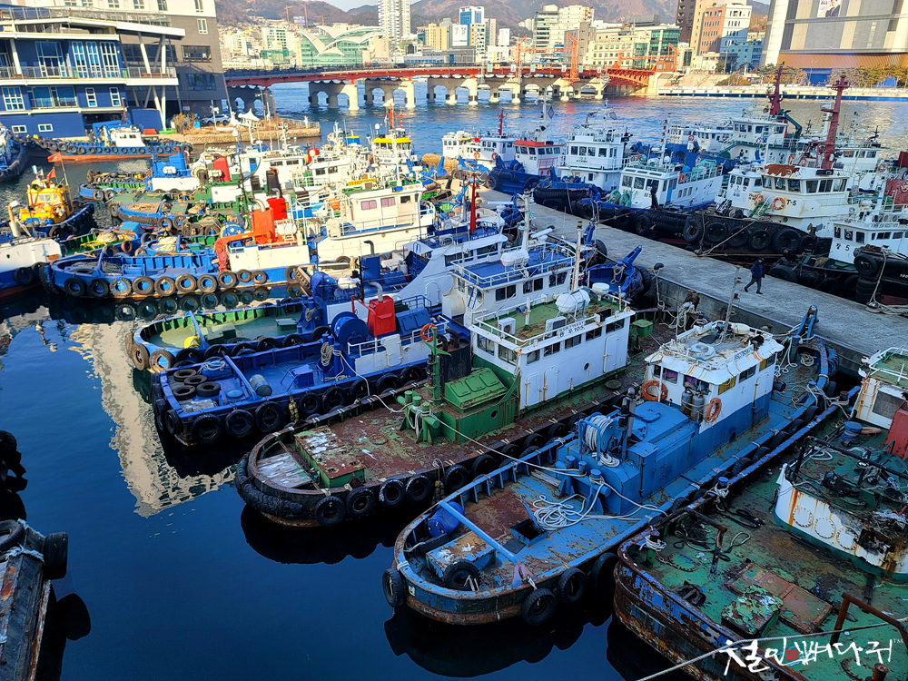 어선이 가득 정박해있는 영도의 복잡스러운 바다는