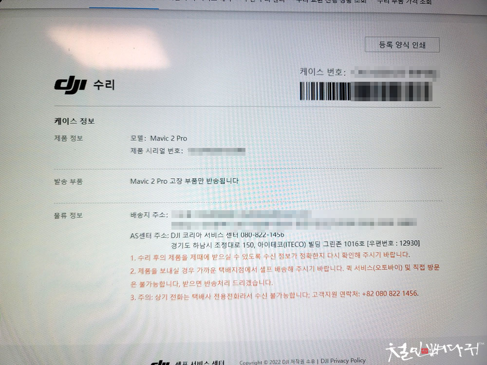 대체해서 보내줄 부품이 없어서 외국의 DJI센터에서