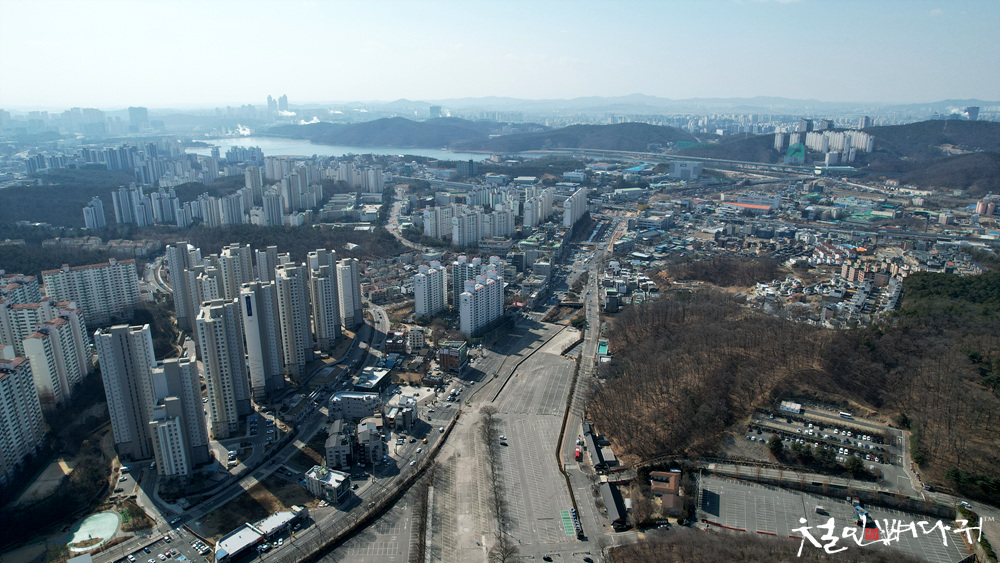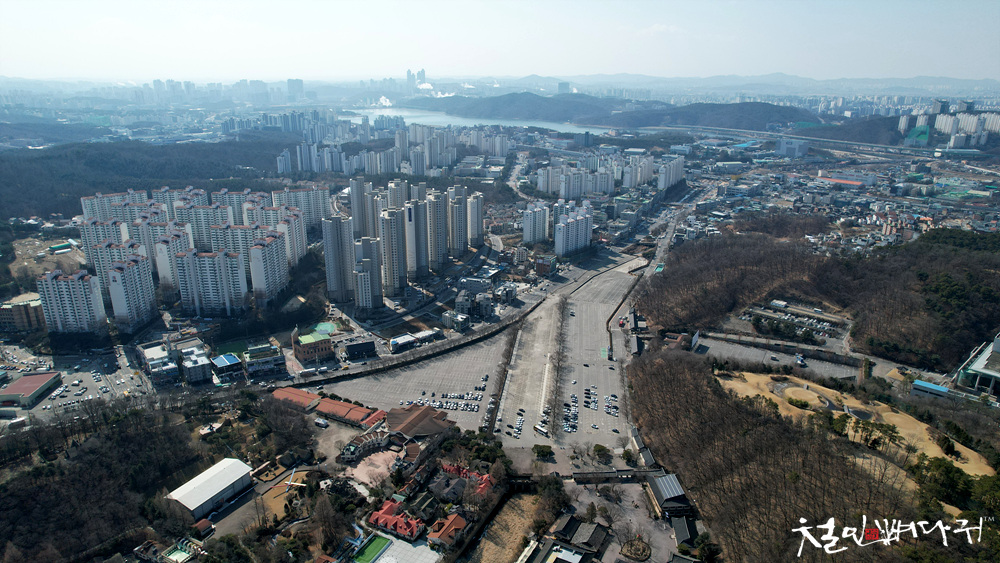 드론 이륙하자마자, 아파트의 숲을 보게 되네요.