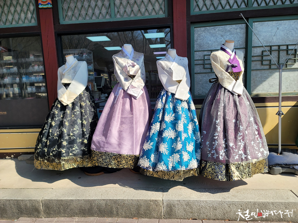 입장하고 오른쪽 상점들 안쪽으로 한복 대여해주는
