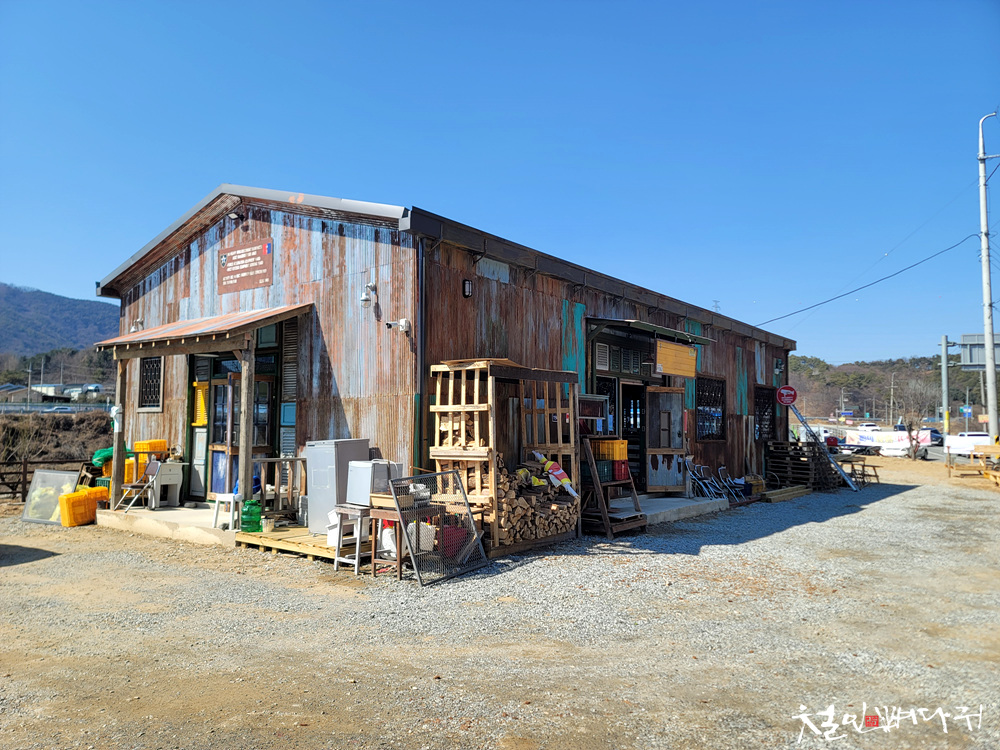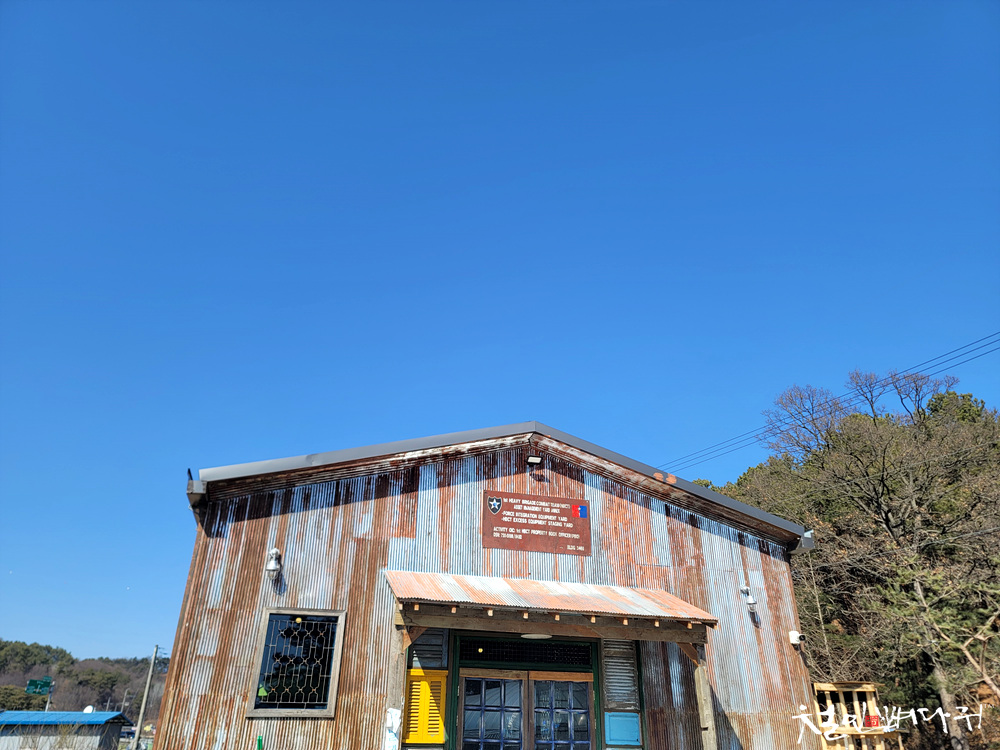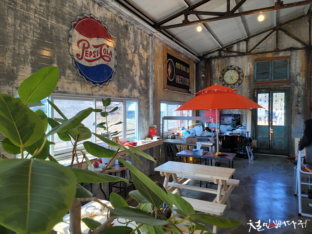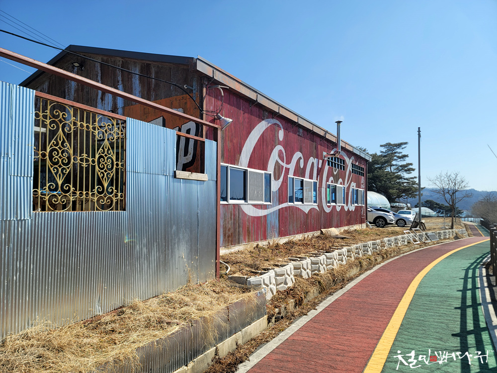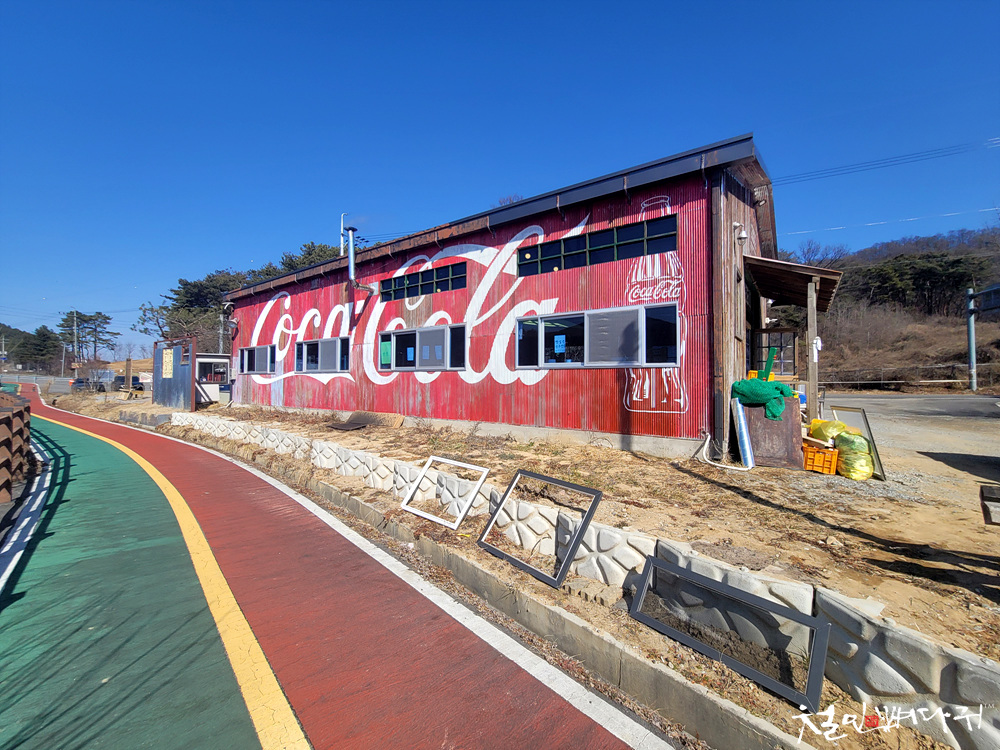 보게 된 창고형 건물이 코카콜라 컨셉이라