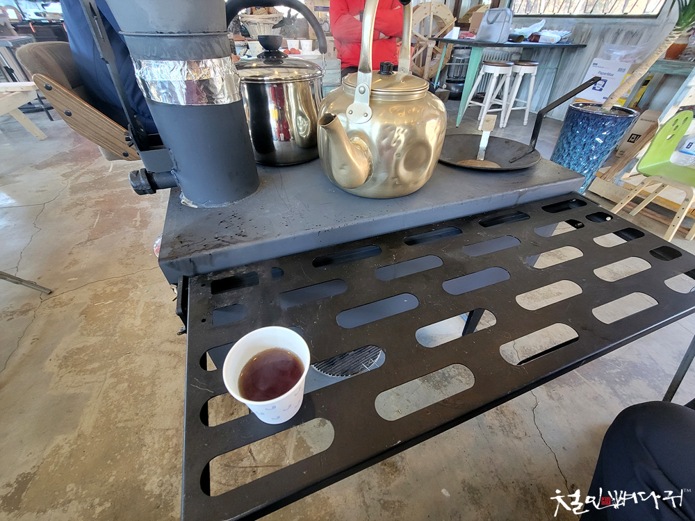 많아서, 간단하게 대추차를 난로에서 끓이다가