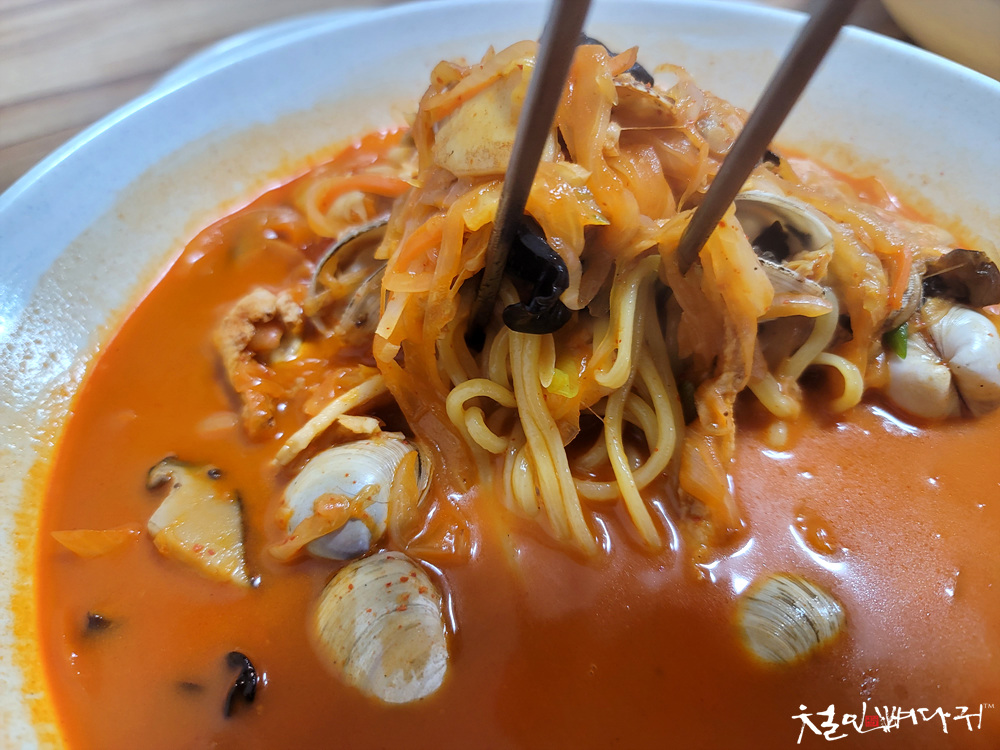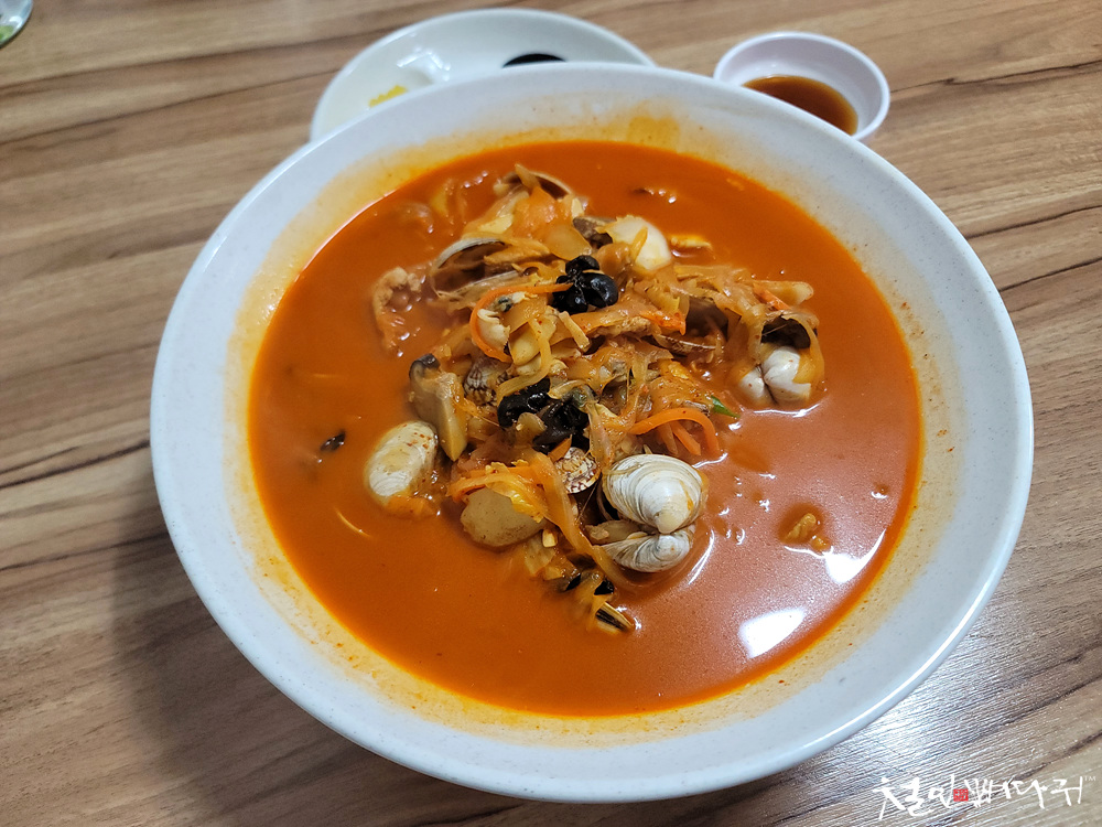 국물부터 먹었는데, 살짝 매콤하면서 짬뽕