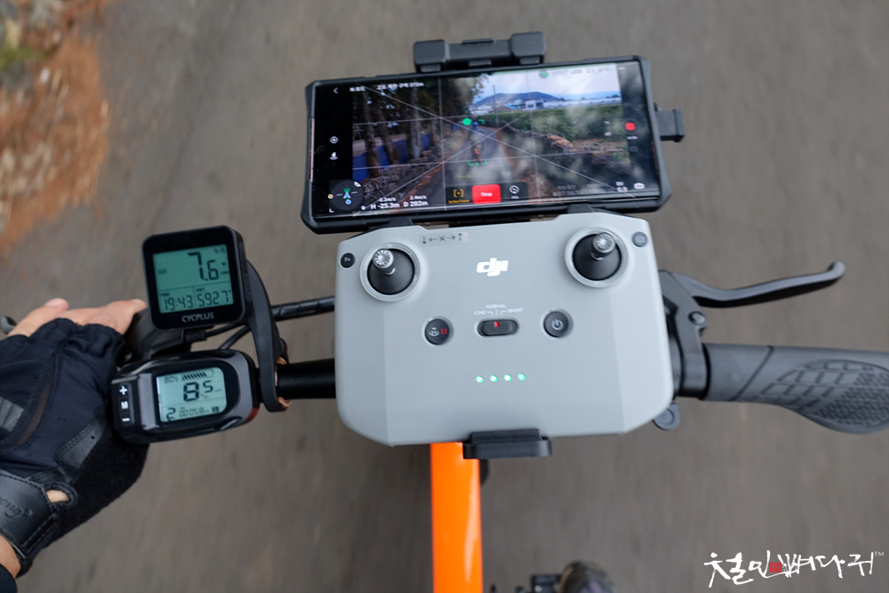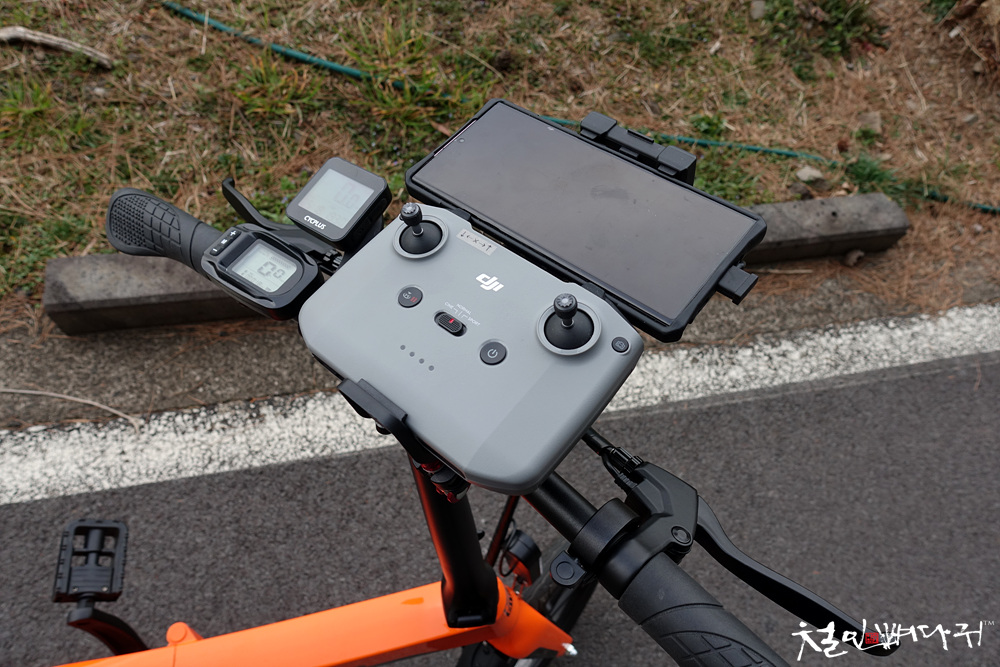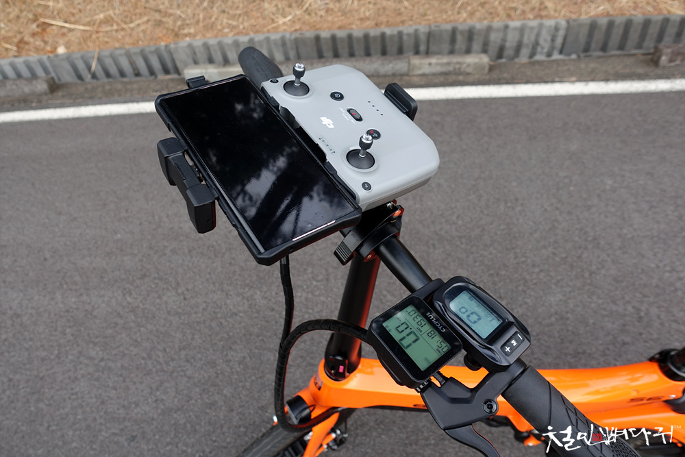 조종기에 핸드폰 거치하고, 조종기를 자전거 핸들에