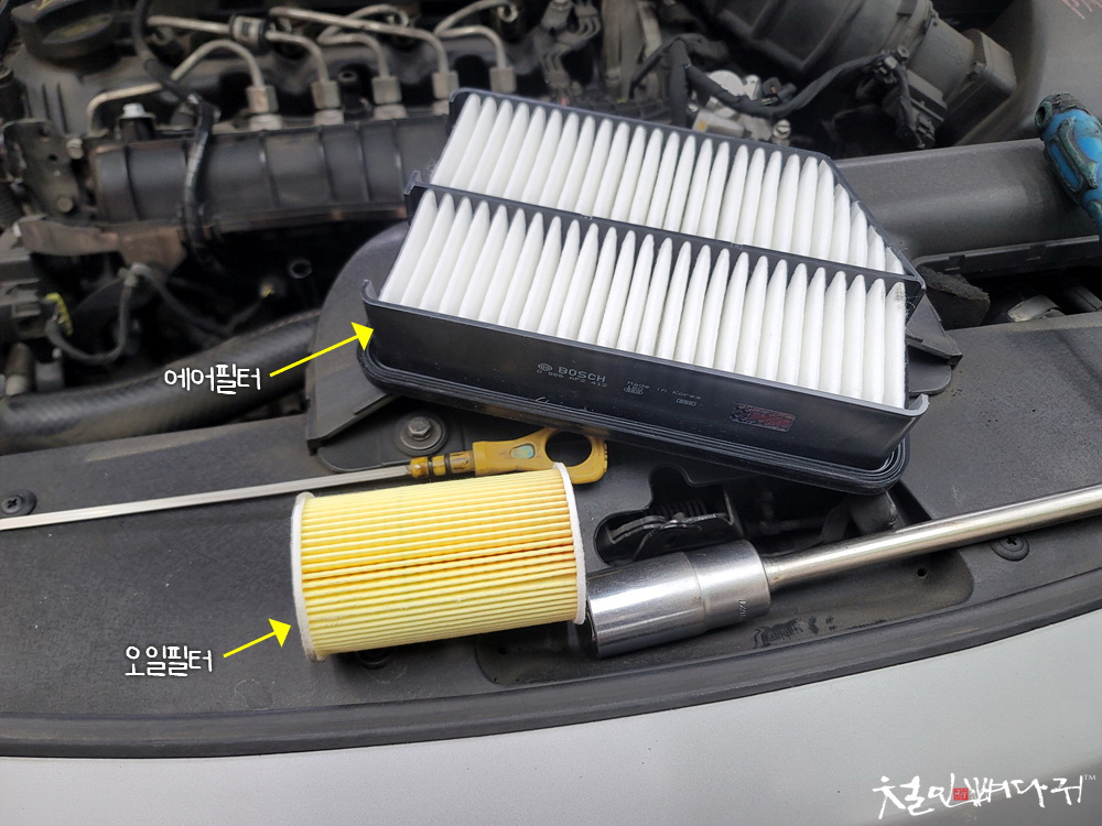 새로 교체해줄, 에어필터와 오일필터입니다.
