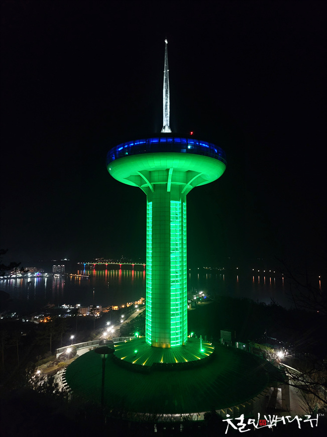 완도타워는 녹색, 노란색, 빨간색