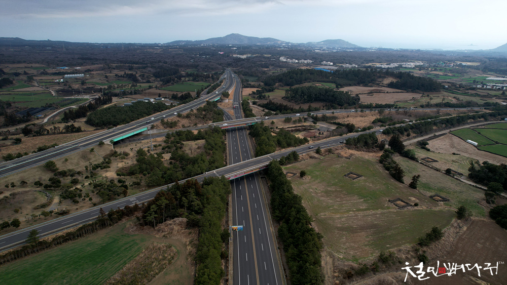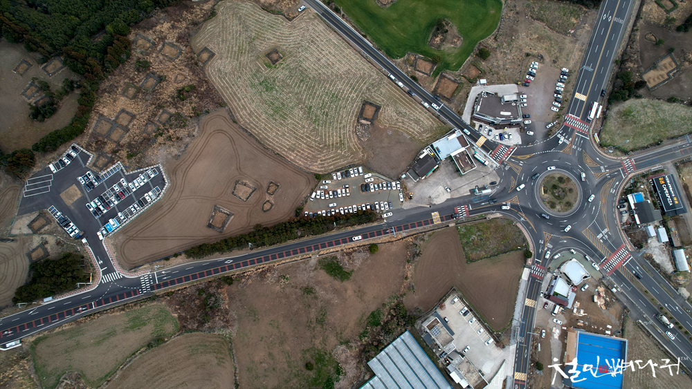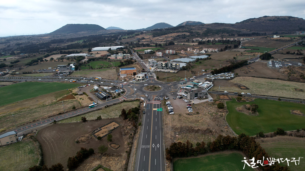제주도 안덕면의 동광육거리는 하늘에서 보면,