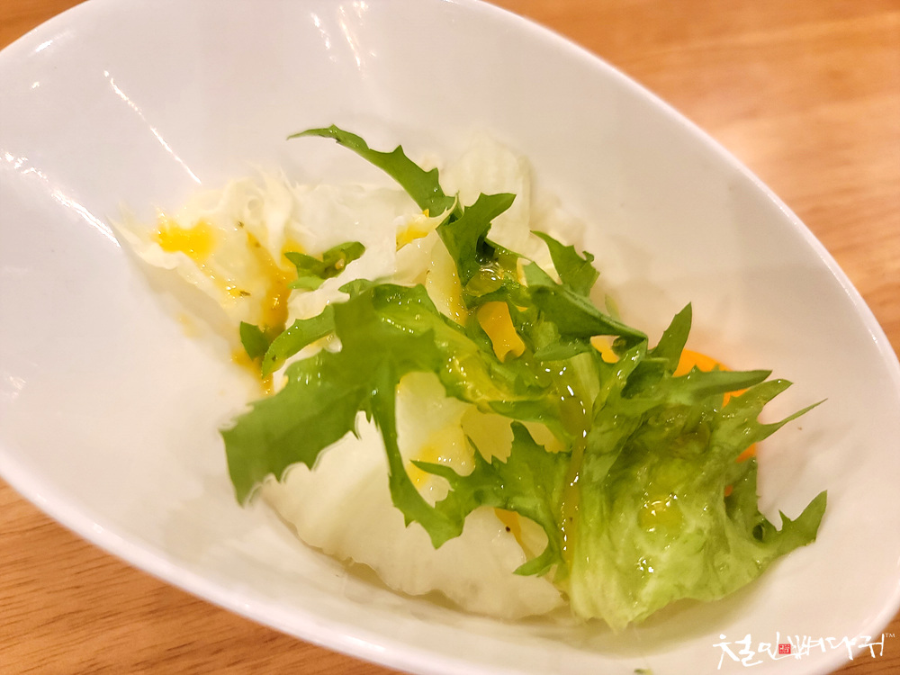 앞서 먹은 밑반찬들을 먹고 난 이후라서,