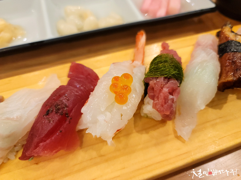 초밥은 약간 작은 사이즈인데,