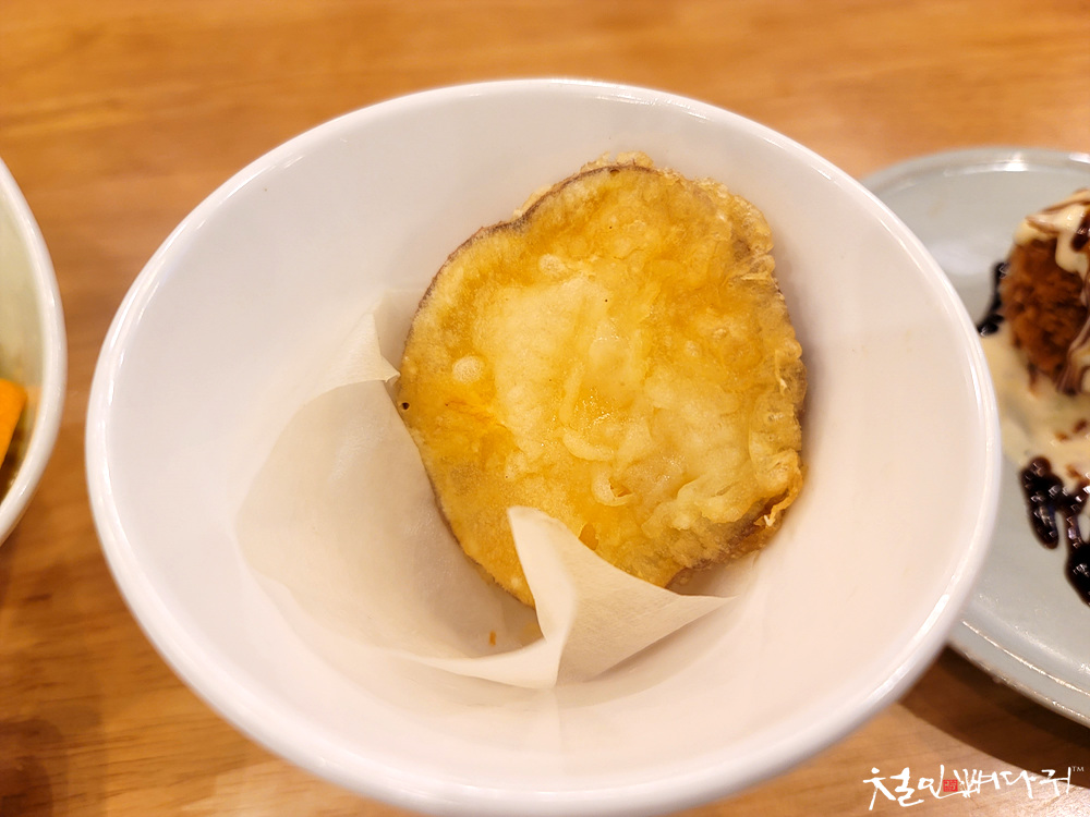 겉은 바삭한 튀김이고, 내부는 촉촉했습니다.