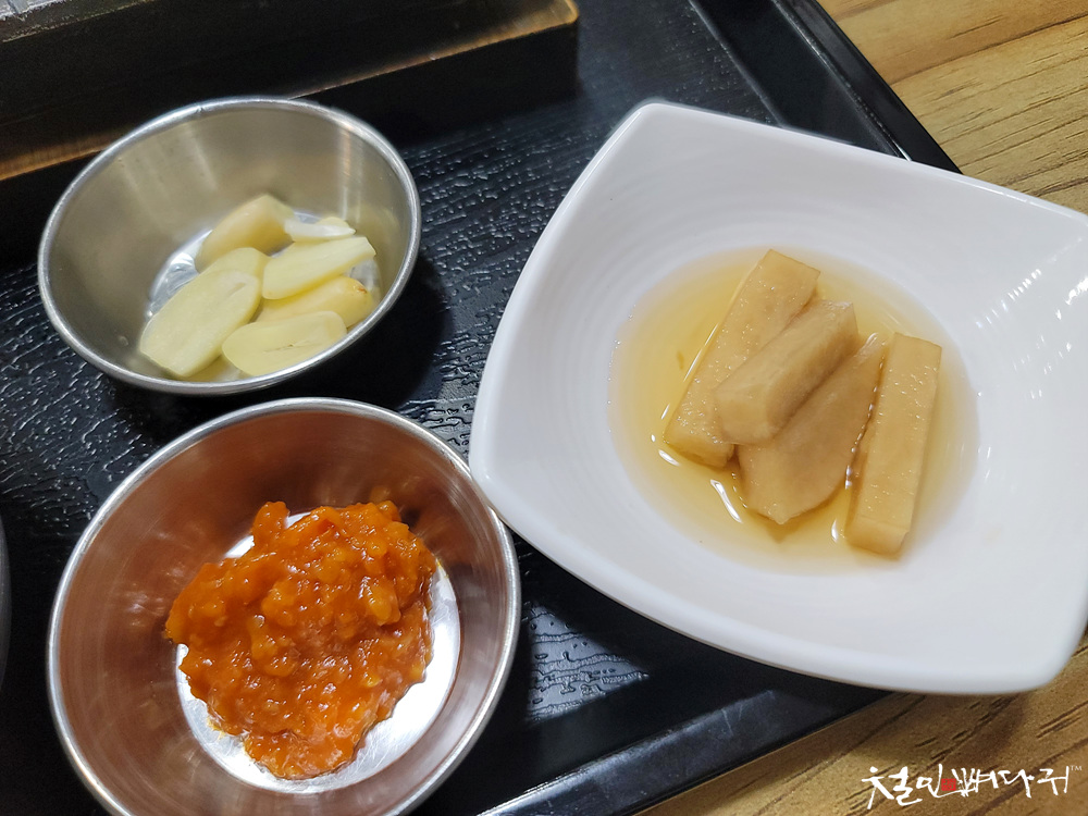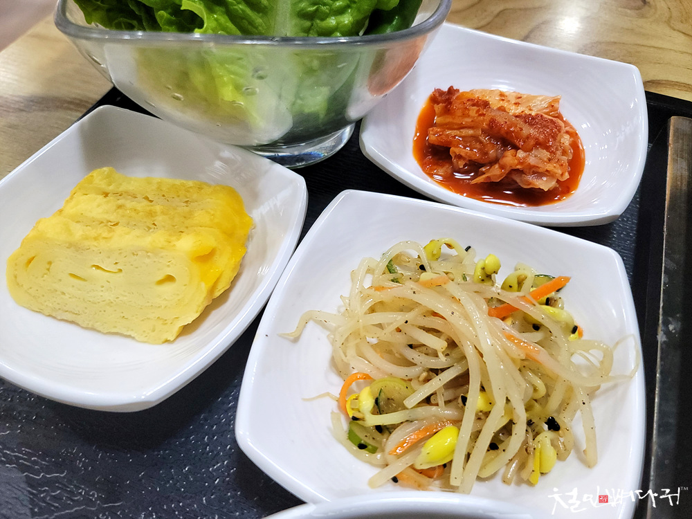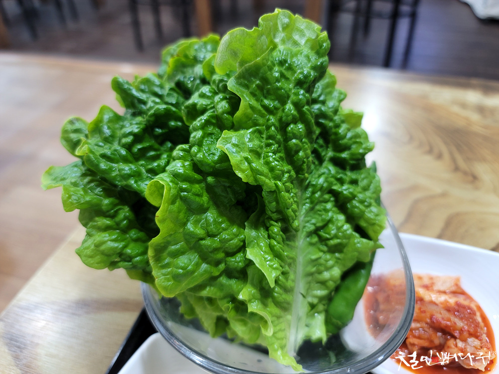 상추와 반찬들이 나오고, 혼자 먹기 딱 좋게 나옵니다.