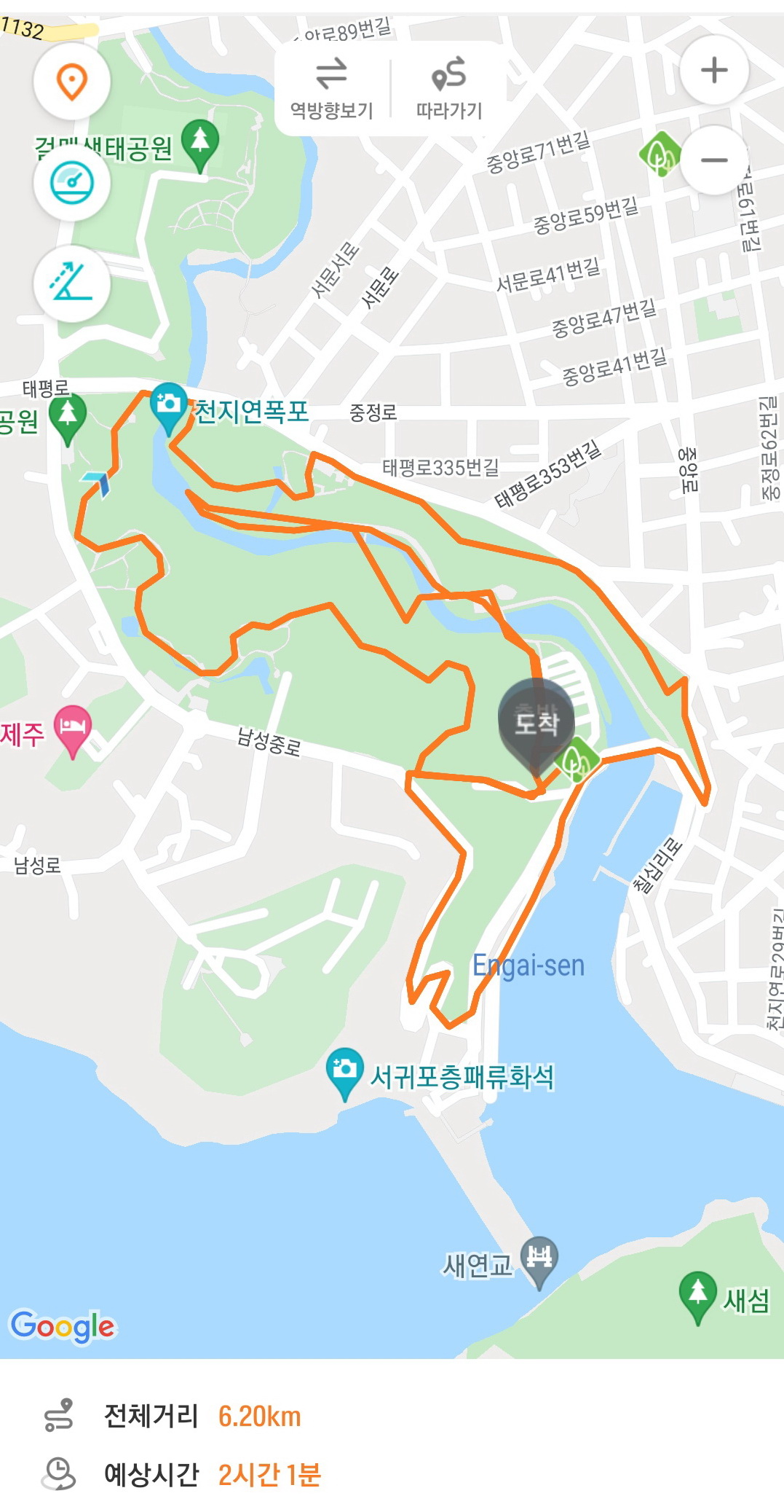 한참 걸었더니 6km 정도를 걸었습니다.