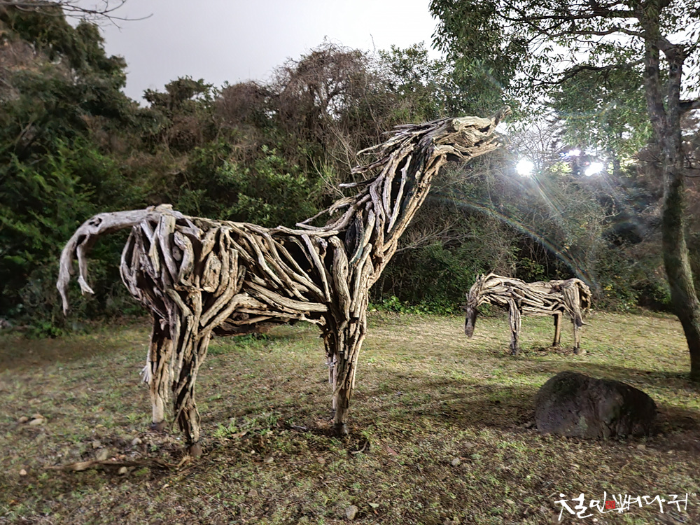 자연의 나무들로 만든 말들도 있었는데,