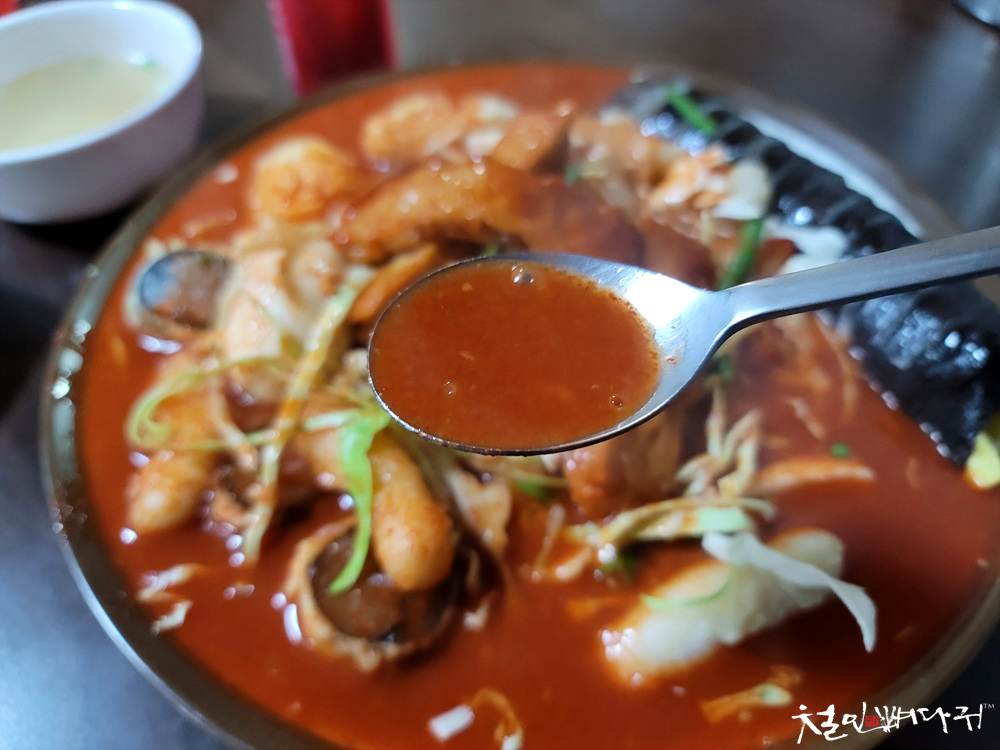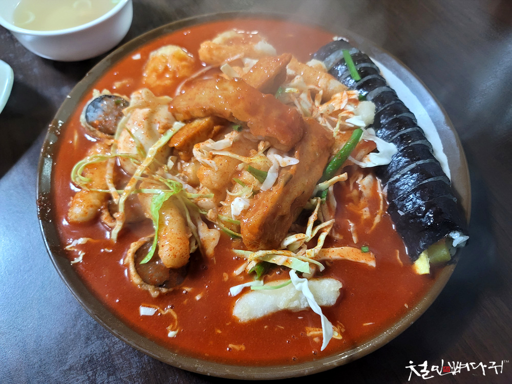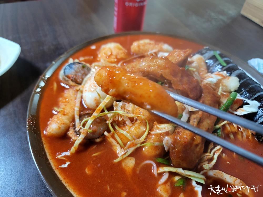 수저로 떡볶이 국물부터 떠먹었습니다.