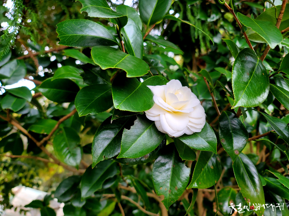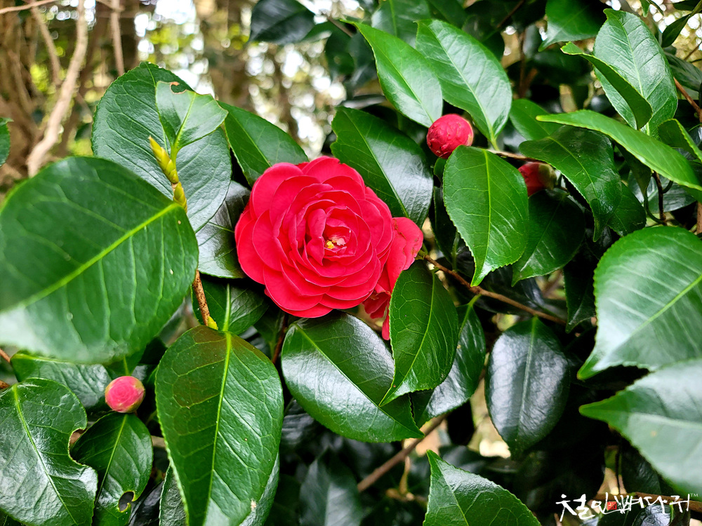 그 덕분에 빨간색과 흰색의 동백꽃을 보기는 했습니다.
