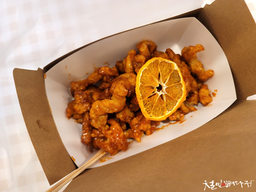 꿀봉강정은 한라봉소스를 사용합니다.