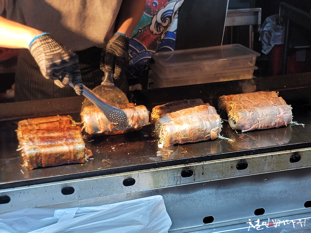 보면, 화려한 불 퍼포먼스를 하는 먹거리